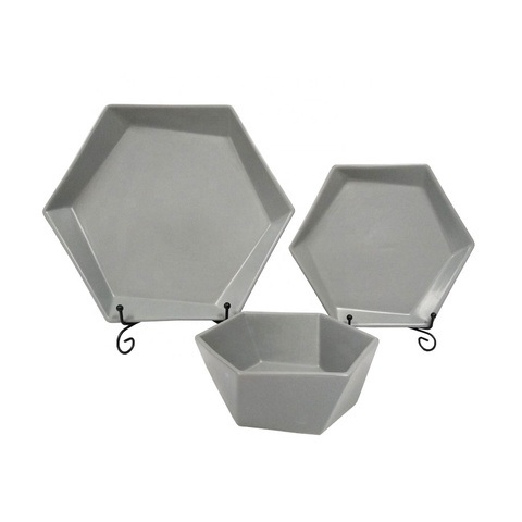 Venda quente Eco-Friendly Grés Servindo Placa Set Diamante Forma Irregular Cerâmica Dinnerware e Cup Kit Grande Valor Preço