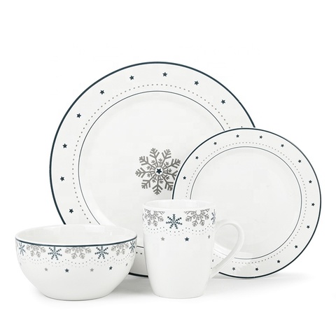 Atacado Matt Grey Green Blue Custom Porcelana Louça Estampagem Cerâmica Dinnerware Set para 4 Pessoas
